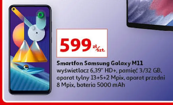 Cena produktu r贸偶ni si臋 w zale偶no艣ci od wybranego sklepu. Produkt Smartfon m11 Samsung galaxy mo偶esz kupi膰 w promocji ju偶 od 899 z艂. Najta艅sza oferta, jak膮 mamy w naszej bazie jest z sieci Carrefour. Smartfon m11 Samsung galaxy kosztuje aktualnie 899 z艂. Zobacz ofert臋
