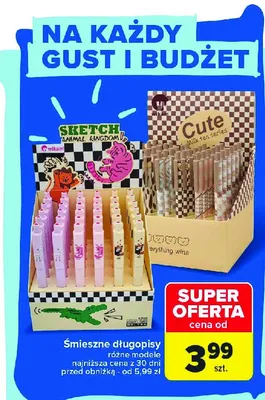 Cena produktu r贸偶ni si臋 w zale偶no艣ci od wybranego sklepu. Niestety nie posiadamy danych o aktualnych promocjach, jednak w艣r贸d archiwalnych ofert 艢mieszny d艂ugopis kosztuje od 3,99 z艂 do 12,99 z艂.