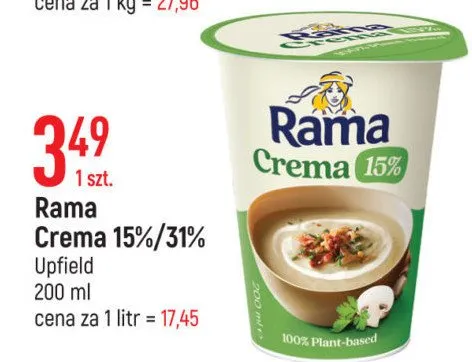 Cena produktu r贸偶ni si臋 w zale偶no艣ci od wybranego sklepu. Niestety nie posiadamy danych o aktualnych promocjach, jednak w艣r贸d archiwalnych ofert 艢mietana 30% Rama crema kosztuje od 2,99 z艂 do 3,79 z艂.