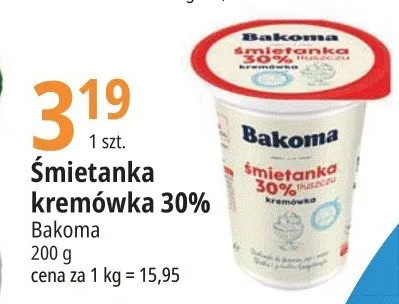 Ile kosztuje 艢mietanka 30% krem贸wka Bakoma?
