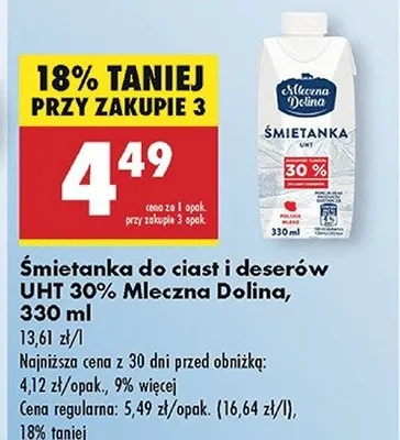 Ile kosztuje 艢mietanka uht 30% Mleczna dolina?