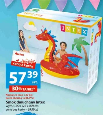 Cena produktu r贸偶ni si臋 w zale偶no艣ci od wybranego sklepu. Niestety nie posiadamy danych o aktualnych promocjach, jednak w艣r贸d archiwalnych ofert Smok 155 x 122 x 109 cm Intex kosztuje od 57,39 z艂.
