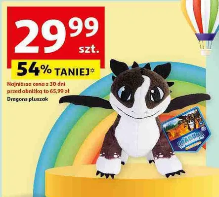 Cena produktu r贸偶ni si臋 w zale偶no艣ci od wybranego sklepu. Niestety nie posiadamy danych o aktualnych promocjach, jednak w艣r贸d archiwalnych ofert Smok pluszak kosztuje od 29,99 z艂.