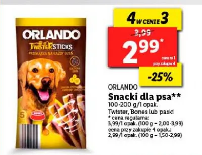 Cena produktu r贸偶ni si臋 w zale偶no艣ci od wybranego sklepu. Niestety nie posiadamy danych o aktualnych promocjach, jednak w艣r贸d archiwalnych ofert Snaki dla psa bones z drobiem Orlando kosztuje od 2,99 z艂.