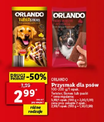 Cena produktu r贸偶ni si臋 w zale偶no艣ci od wybranego sklepu. Niestety nie posiadamy danych o aktualnych promocjach, jednak w艣r贸d archiwalnych ofert Snaki dla psa twister sticks Orlando kosztuje od 2,99 z艂 do 3,99 z艂.