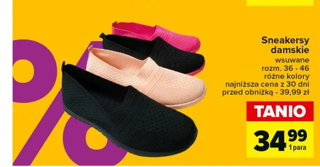 Nie wiesz gdzie kupi膰 produkt Sneakersy damskie w promocji? Aktualnie produkt Sneakersy damskie znajduje si臋 w atrakcyjnej cenie w sklepach Lidl. Opr贸cz tego produkt mo偶na kupi膰 w innych sklepach, jednak aktulanie nie posiadamy informacji o promocjach w nich.