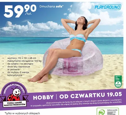Sofa dmuchana 112 x 110 x 68 cm Playground aktualnie nie wyst臋puje w bazie naszych gazetek promocyjnych. Nie martw si臋! Gdy tylko pojawi si臋 ciekawa promocja na Sofa dmuchana 112 x 110 x 68 cm Playground, umie艣cimy j膮 na naszej stronie