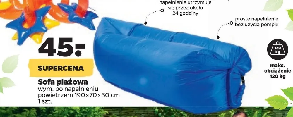Zastanawiasz si臋, gdzie kupi膰 i ile kosztuje produkt Sofa pla偶owa 190 x 70 x 50 cm? Regularnie sprawdzamy, czy jest promocja na ten produkt w Biedronka, Lidl, Kaufland, Auchan, Netto, Makro i innych sklepach. Aktualnie nie posiadamy ofert promocyjnych na ten produkt.
