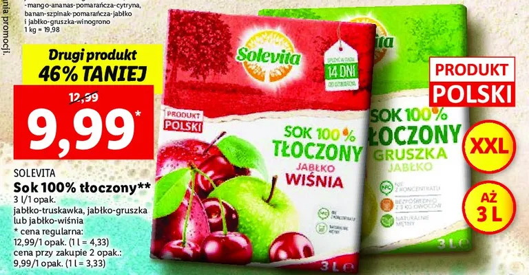 Przegl膮daj oferty promocyjne na produkt Sok 100% t艂oczony jab艂ko-gruszka Solevita
