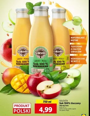 Gdzie mo偶na tanio kupi膰 produkt Sok 100% t艂oczony jab艂ko i agrest Solevita?