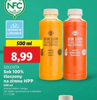 Sok 100% t艂oczony na zimno jab艂ko-pomara艅cza-truskawka Solevita promocje w sklepach - znajd藕 ofert臋 dla siebie!