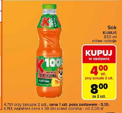 Przegl膮daj podobne oferty promocyjne do Sok brzoskwinia-marchew-jab艂ko Kubu艣 100% sok!