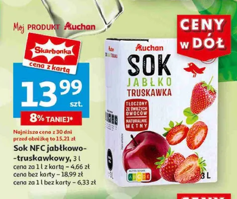 Gdzie mo偶na tanio kupi膰 produkt Sok jab艂ko-truskawka Auchan r贸偶norodne (logo czerwone)?
