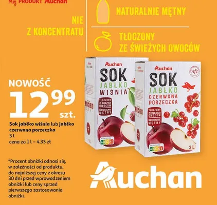 Sok jabłko wiśnia Auchan różnorodne (logo czerwone) promocje w sklepach - znajdź ofertę dla siebie!