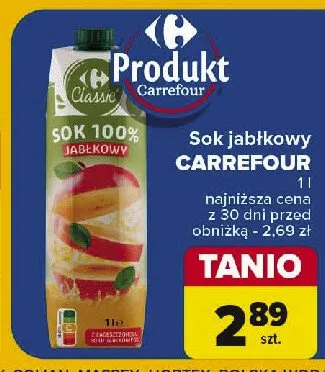 Gdzie mo偶na tanio kupi膰 produkt Sok jab艂kowy 100% Carrefour classic?