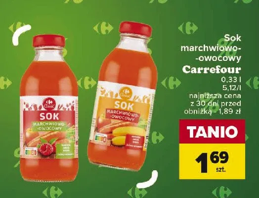 Ile kosztuje Sok marchew-jab艂ko-banan Carrefour classic?