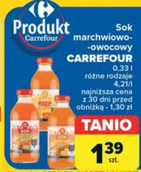 Ile kosztuje Sok marchew-jab艂ko-malina Carrefour classic?