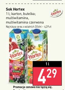 Cena produktu r贸偶ni si臋 w zale偶no艣ci od wybranego sklepu. Niestety nie posiadamy danych o aktualnych promocjach, jednak w艣r贸d archiwalnych ofert Sok multiwitamina czerwona Hortex kosztuje od 4,29 z艂.