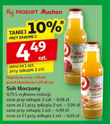 Gdzie mo偶na tanio kupi膰 produkt Sok t艂oczony z jab艂ek i marchewek Auchan?