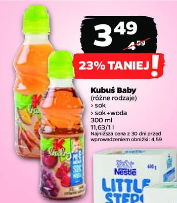 Przegl膮daj podobne oferty promocyjne do Sok+woda organic jab艂ko-malina Kubu艣 baby!