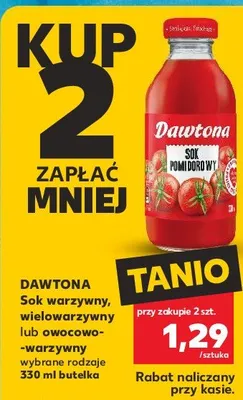 Cena produktu różni się w zależności od wybranego sklepu. Niestety nie posiadamy danych o aktualnych promocjach, jednak wśród archiwalnych ofert Sok z buraków z marchwią i pomarańczą Dawtona kosztuje od 1,25 zł do 1,29 zł.