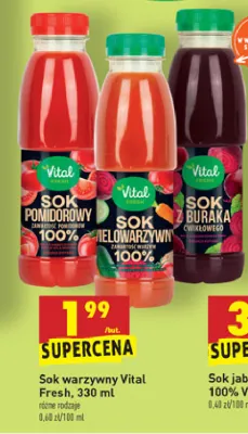 Cena produktu r贸偶ni si臋 w zale偶no艣ci od wybranego sklepu. Niestety nie posiadamy danych o aktualnych promocjach, jednak w艣r贸d archiwalnych ofert Sok z czerwonych burak贸w Vital fresh kosztuje od 1,99 z艂.