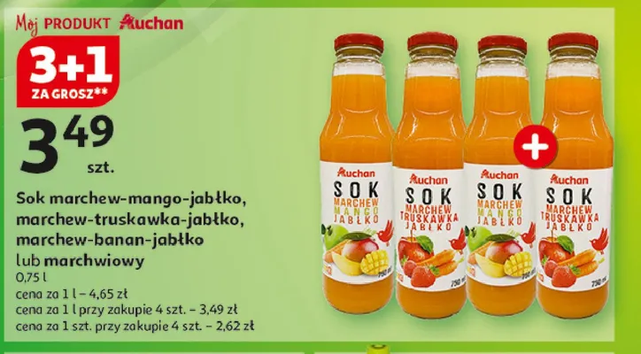 Gdzie mo偶na tanio kupi膰 produkt Sok z marchwi truskawek i jab艂ek Auchan?