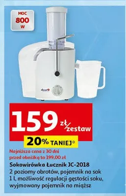 Cena produktu r贸偶ni si臋 w zale偶no艣ci od wybranego sklepu. Produkt Sokowir贸wka jc2018 艁ucznik mo偶esz kupi膰 w promocji ju偶 od 169 z艂. Najta艅sza oferta, jak膮 mamy w naszej bazie jest z sieci Auchan. Sokowir贸wka jc2018 艁ucznik kosztuje aktualnie 169 z艂. Zobacz ofert臋