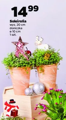 Cena produktu r贸偶ni si臋 w zale偶no艣ci od wybranego sklepu. Niestety nie posiadamy danych o aktualnych promocjach, jednak w艣r贸d archiwalnych ofert Soleirolia kosztuje od 9,99 z艂 do 14,99 z艂.
