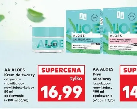 Cena produktu różni się w zależności od wybranego sklepu. Niestety nie posiadamy danych o aktualnych promocjach, jednak wśród archiwalnych ofert Sorbet dzienno-nocny nawilżająco-kojący AA ALOES kosztuje od 16,99 zł do 20,99 zł.