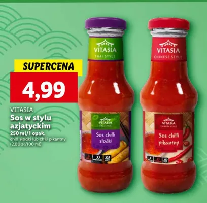 Cena produktu r贸偶ni si臋 w zale偶no艣ci od wybranego sklepu. Niestety nie posiadamy danych o aktualnych promocjach, jednak w艣r贸d archiwalnych ofert Sos chili Vitasia thai kosztuje od 3,49 z艂 do 4,99 z艂.