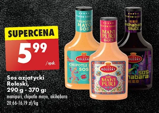 Cena produktu r贸偶ni si臋 w zale偶no艣ci od wybranego sklepu. Niestety nie posiadamy danych o aktualnych promocjach, jednak w艣r贸d archiwalnych ofert Sos chipotle mayo Roleski kosztuje od 5,99 z艂.