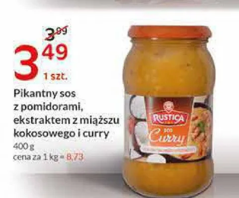 Gdzie mo偶na tanio kupi膰 produkt Sos curry z mleczkiem kokosowym Wiod膮ca marka rustica?