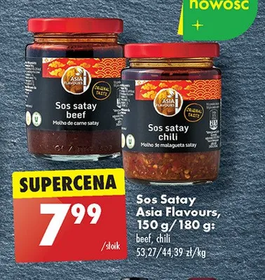 Zastanawiasz si臋, gdzie kupi膰 i ile kosztuje produkt Sos satay chili Asia flavours? Regularnie sprawdzamy, czy jest promocja na ten produkt w Biedronka, Lidl, Kaufland, Auchan, Netto, Makro i innych sklepach. Aktualnie nie posiadamy ofert promocyjnych na ten produkt.