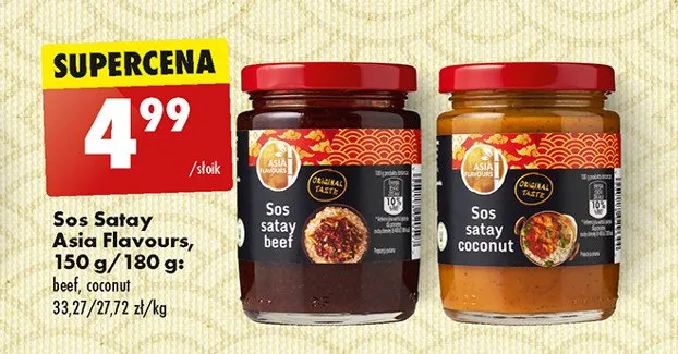 Zastanawiasz si臋, gdzie kupi膰 i ile kosztuje produkt Sos satay coconut Asia flavours? Regularnie sprawdzamy, czy jest promocja na ten produkt w Biedronka, Lidl, Kaufland, Auchan, Netto, Makro i innych sklepach. Aktualnie nie posiadamy ofert promocyjnych na ten produkt.