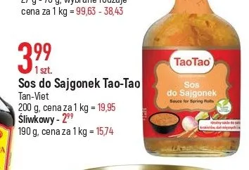 Cena produktu r贸偶ni si臋 w zale偶no艣ci od wybranego sklepu. Niestety nie posiadamy danych o aktualnych promocjach, jednak w艣r贸d archiwalnych ofert Sos 艣liwkowy Tao tao kosztuje od 2,99 z艂.