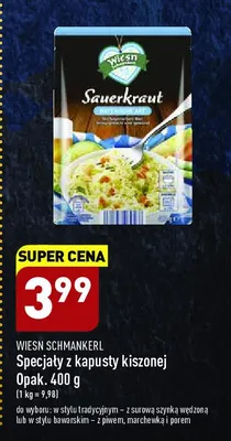 Cena produktu r贸偶ni si臋 w zale偶no艣ci od wybranego sklepu. Niestety nie posiadamy danych o aktualnych promocjach, jednak w艣r贸d archiwalnych ofert Specja艂 z kapusty kiszonej w stylu tradycyjnym z szynk膮 WIESN SCHMAKNERL kosztuje od 3,99 z艂.