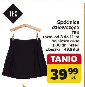 Cena produktu r贸偶ni si臋 w zale偶no艣ci od wybranego sklepu. Niestety nie posiadamy danych o aktualnych promocjach, jednak w艣r贸d archiwalnych ofert Sp贸dnica dziewcz臋ca 3-14 lat Tex kosztuje od 39,99 z艂.