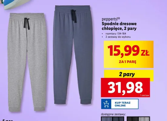 Zastanawiasz si臋, gdzie kupi膰 i ile kosztuje produkt Spodnie ch艂opi臋ce Pepperts!? Regularnie sprawdzamy, czy jest promocja na ten produkt w Biedronka, Lidl, Kaufland, Auchan, Netto, Makro i innych sklepach. Aktualnie nie posiadamy ofert promocyjnych na ten produkt.