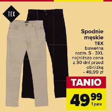 Zastanawiasz si臋, gdzie kupi膰 i ile kosztuje produkt Spodnie damskie rozm. s-3xl Tex? Regularnie sprawdzamy, czy jest promocja na ten produkt w Biedronka, Lidl, Kaufland, Auchan, Netto, Makro i innych sklepach. Aktualnie posiadamy 2 oferty promocyjne na ten produkt. Ceny zaczynaj膮 si臋 od 34,99z艂!