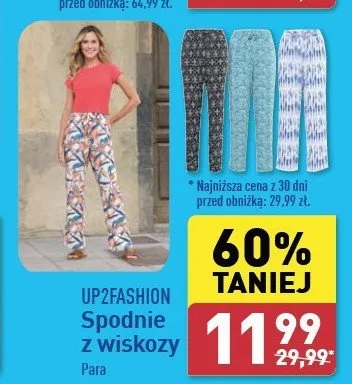 Zastanawiasz si臋, gdzie kupi膰 i ile kosztuje produkt Spodnie damskie wiskoza 38-46 Up2fashion? Regularnie sprawdzamy, czy jest promocja na ten produkt w Biedronka, Lidl, Kaufland, Auchan, Netto, Makro i innych sklepach. Aktualnie nie posiadamy ofert promocyjnych na ten produkt.