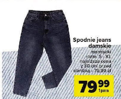 Cena produktu r贸偶ni si臋 w zale偶no艣ci od wybranego sklepu. Produkt Spodnie jeans damskie s-xl mo偶esz kupi膰 w promocji ju偶 od 14,99 z艂. Najta艅sza oferta, jak膮 mamy w naszej bazie jest z sieci Carrefour. Spodnie jeans damskie s-xl kosztuje aktualnie 14,99 z艂. Zobacz ofert臋