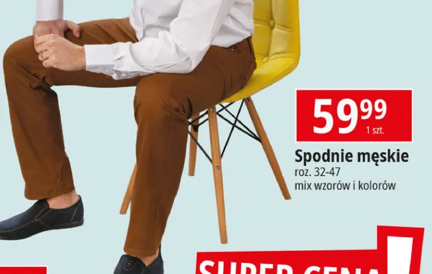 Nie wiesz gdzie kupi膰 produkt Spodnie m臋skie 32-47 w promocji? Aktualnie produkt Spodnie m臋skie 32-47 znajduje si臋 w atrakcyjnej cenie w sklepach Selgros. Opr贸cz tego produkt mo偶na kupi膰 w innych sklepach, jednak aktulanie nie posiadamy informacji o promocjach w nich.