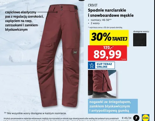 Przegl膮daj podobne oferty promocyjne do Spodnie narciarskie m臋skie 46-56 Crivit!