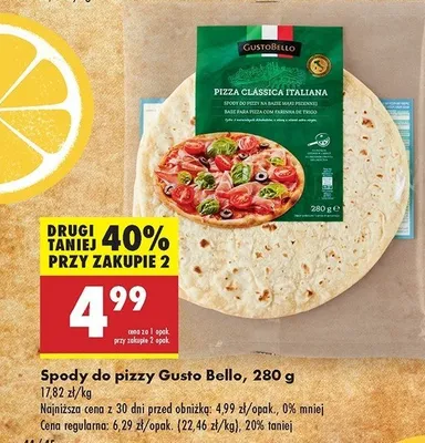 Cena produktu r贸偶ni si臋 w zale偶no艣ci od wybranego sklepu. Niestety nie posiadamy danych o aktualnych promocjach, jednak w艣r贸d archiwalnych ofert Spody do pizzy Gustobello kosztuje od 4,99 z艂.