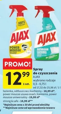 Cena produktu r贸偶ni si臋 w zale偶no艣ci od wybranego sklepu. Produkt Spray do czyszczenia Ajax kitchen Ajax . mo偶esz kupi膰 w promocji ju偶 od 4,99 z艂 do 14,99 z艂. Najta艅sza oferta, jak膮 mamy w naszej bazie jest z sieci Biedronka. Spray do czyszczenia Ajax kitchen Ajax . kosztuje aktualnie 4,99 z艂. Zobacz ofert臋