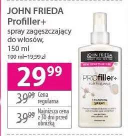 Cena produktu r贸偶ni si臋 w zale偶no艣ci od wybranego sklepu. Produkt Spray do w艂os贸w mo偶esz kupi膰 w promocji ju偶 od 25,99 z艂 do 69,99 z艂. Najta艅sza oferta, jak膮 mamy w naszej bazie jest z sieci Hebe. Spray do w艂os贸w kosztuje aktualnie 25,99 z艂. Zobacz ofert臋