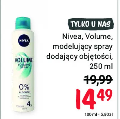 Ile kosztuje Spray do włosów dodający objętości volume forming Nivea?