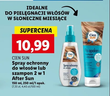 Cena produktu r贸偶ni si臋 w zale偶no艣ci od wybranego sklepu. Niestety nie posiadamy danych o aktualnych promocjach, jednak w艣r贸d archiwalnych ofert Spray ochronny do w艂os贸w Cien sun kosztuje od 10,99 z艂.