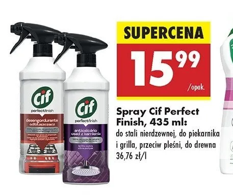 Cena produktu r贸偶ni si臋 w zale偶no艣ci od wybranego sklepu. Niestety nie posiadamy danych o aktualnych promocjach, jednak w艣r贸d archiwalnych ofert Spray ple艣艅 i czarne osady Cif kosztuje od 9,99 z艂 do 15,99 z艂.